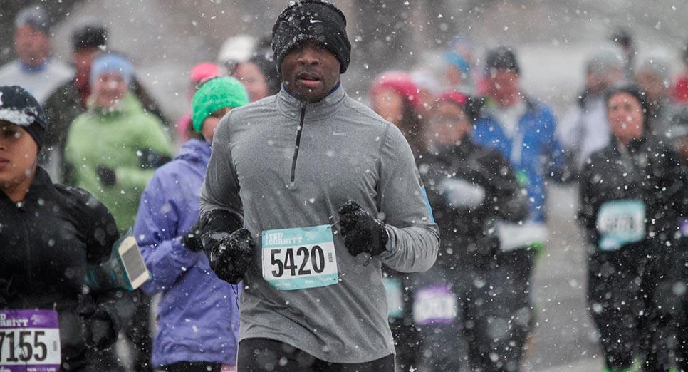 Controversy at the start. The weather, it was not so great. The temps were in the mid- to upper -20s, and up to 3” of snow was being forecast in the area for Saturday. However, and this was how I made my personal call, the snow was not supposed to really start in earnest until late morning or early afternoon. Well, the weather people got that wrong – about the time the race started, the snow started going strong. Many people felt that the combination of the temperatures and the snow should have led the NYRR to call off (or at least postpone) the race, or declare it a “fun run.”