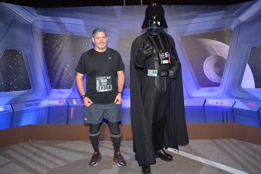 Another runDisney pro-tip – they have character pictures at the start line, and if you get there early enough the lines are not very long. Two pro-tips in a row – when you walk up early, the first line you see will be the longest, and they get progressively shorter. For this race, Darth Vader winds up being easily the most popular picture, but they put him three characters deep on the other side of the DJ so you don’t see him when you walk up. At 3:30am, the line for the first character (BB-8) was already quite long, but I spent all of about three minutes in line for Darth Vader. The same for Boba Fett, who was last in line. I then went and spent maybe 10 minutes waiting for Kylo Ren, and saved BB-8 for the next day. Then it was hit the port-a-potties, make my way over to the corral area, hit the port-a-potties again. Walk around a bit, hit the port-a-potties one more time, and then into the corral to wait for the start.