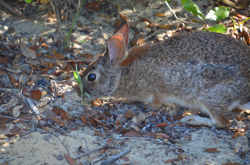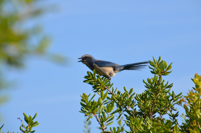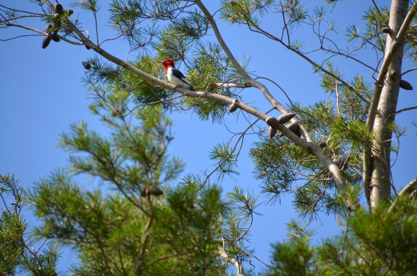 We got to the trailhead right at 8am, and the morning was still cool enough we began encountering wildlife in the first few minutes. A corn snake crossed the path, a rabbit let us approach way too close, and the scrub jays made a ruckus in the way scrub jays do. Then, once we got into the forest, we chased red-headed woodpeckers, zebra swallowtails and Eastern swallowtails, and more scrub jays – so many scrub jays. The trail wound through the trees, in and out of small hammocks of live oak or other not-pine ecosystem. Small-ish vestiges of the old farms remained, including a cattle dip that seemed to come out of nowhere in the middle of the forest. The way the vines and moss covered the concrete structure gave an Indiana Jones feel to the whole adventure.