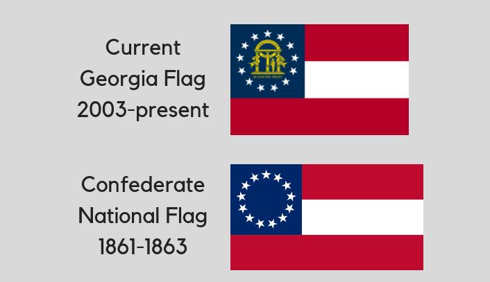 Confederate battle flags should be outlawed, just like swastikas are outlawed in Germany.  But not just the battle flag.  Take a look at Georgia’s state flag, and compare it to the official flag of the Confederate States of America.  Mississippi is getting all of the attention right now for the battle flag, but tell me this is any better?